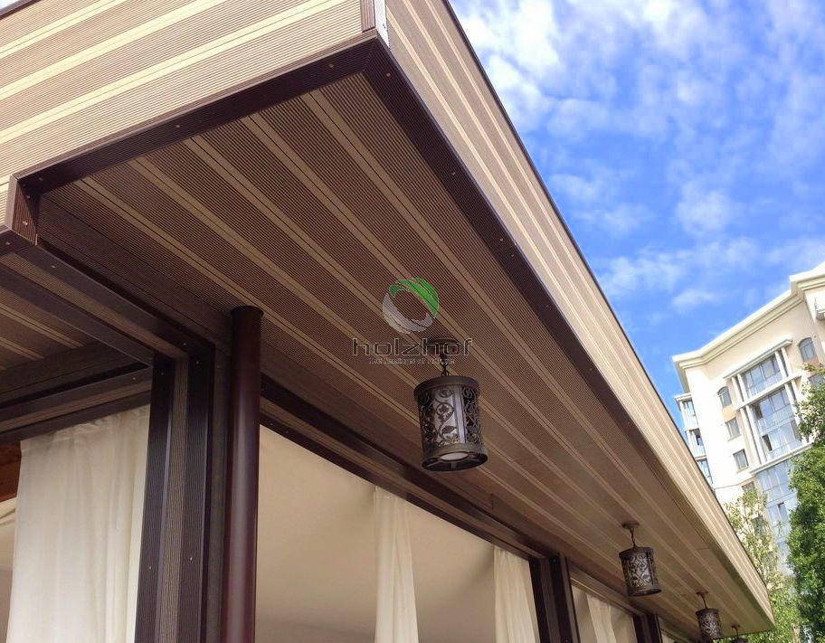 Монтаж был осуществлен бригадой наших монтажников. Все стационарные элементы конструкций, таких как веранда, парапеты, переходы, лестницы столбы и т.п. были обшиты именно террасной доской ДПК Holzhof. Обращаем Ваше внимание, что именно эта доска имеет целый ряд преимуществ для использования ее на коммерческих объектах: