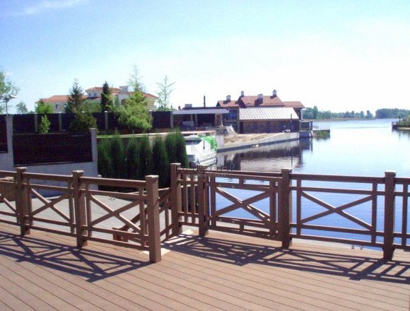 На безе отдыха "Медведица" в г. Астрахани уложена устойчивая к любым атмосферным явлениям террасная доска из ДПК марки holzhof шовного типа. Ограждения выполненные также из композитного материала выпускаемого под брендом Holzdorf.