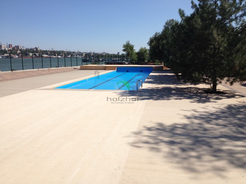 Выполнены работы по монтажу декинга из ДПК в г. Ростове-на-Дону. Общий объем работ составил более 1500 кв.м. Все работы выполнены бригадой наших монтажников. Интересным моментом в данном проекте было изготовление нескольких видов оснований для подконструкции. Тут применялись и винтовые сваи и регулируемые опоры и бетонная стяжка.