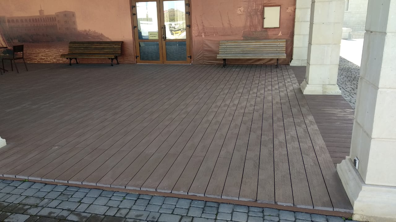 В процессе восстановления едва сохранившейся до наших дней Константиновской батареи, использовались современные, высокотехнологичные материалы в области строительства. Для реконструкции смотровой площадки за основу была взята, не имеющая аналогов в мире, террасная доска из древесно-полимерного композита Woozen, в сочетании с регулируемыми опорами Eterno, которые легко монтируются, устойчивы к перепадам температур, влажности и выдерживают большие нагрузки.